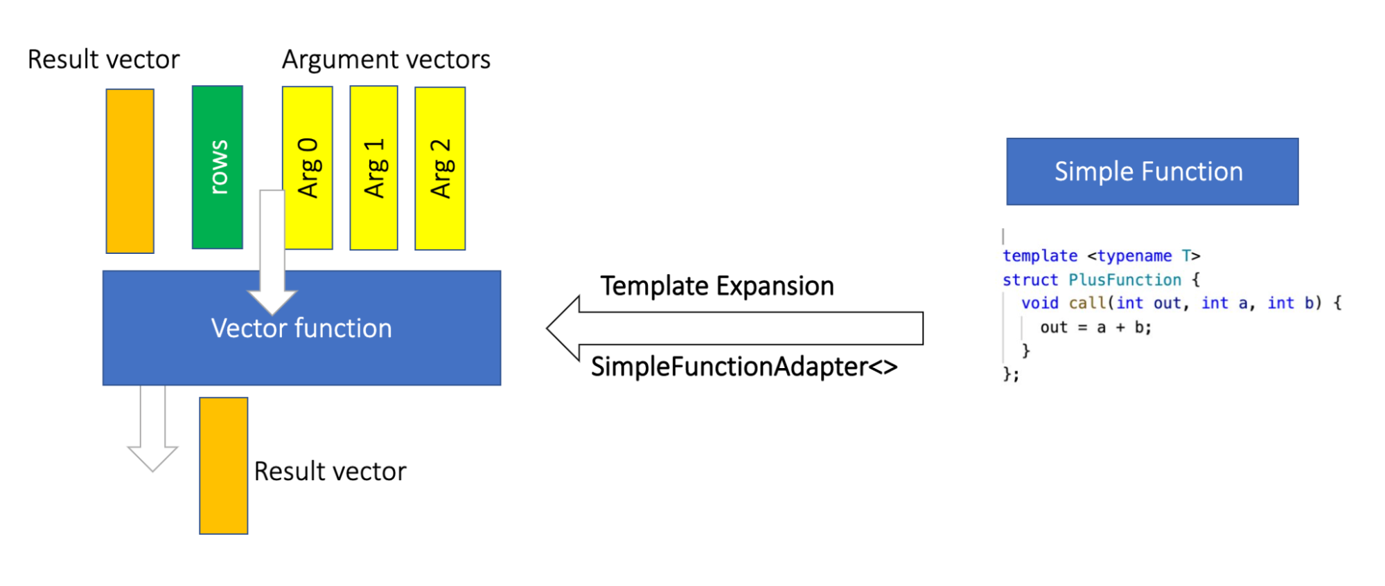 In this blogpost, we will discuss two major recent changes to the simple function interface to make its performance comparable to the vector function implementations for functions that produce or consume complex types (Arrays, Maps and Rows).