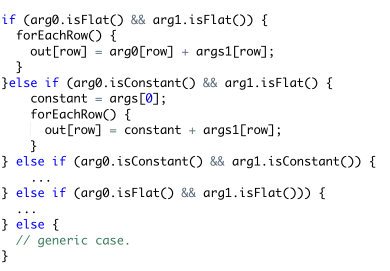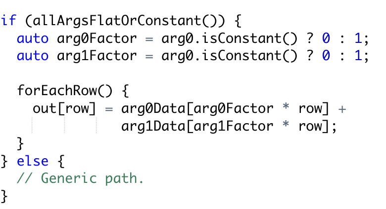 The previous approach has two key inefficiencies; Eager materialization : For each row, all the data in the input vector is decoded and read before calling the function. And Double reading, the data is read twice once when the input is constructed, and again in the function when it's used.